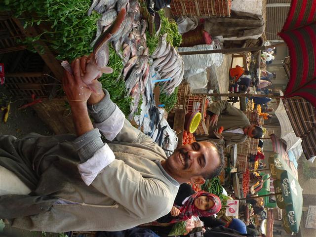 Upon reaching the heart of the neighborhood we encountered lively merchants selling nearly anything a local would need: fresh vegetables, meats, livestock, and clothing. Loads of fresh mackerel, tilapia, and catfish rounded out the offering as fresh fish. The merchants were very motivated to sells us something. This guy thought perhaps we would change our minds if he waved his goods directly in our faces to prove their freshness: