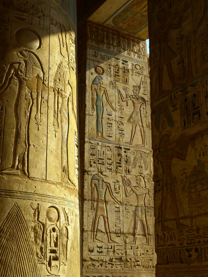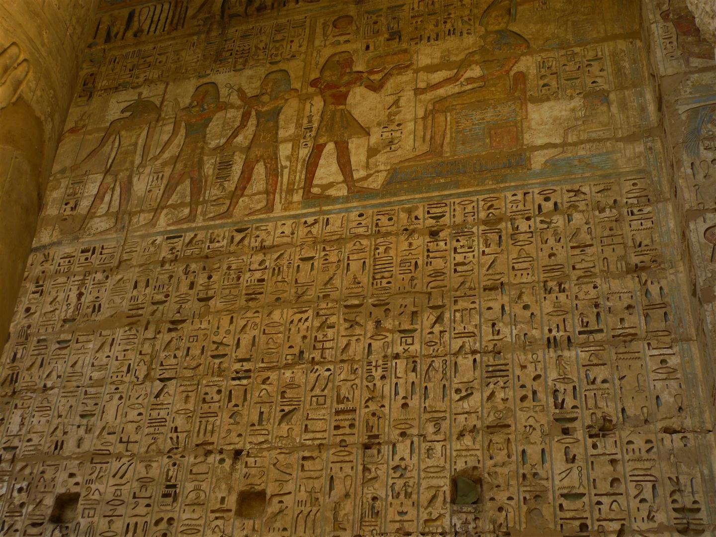 Once we visited our 3 tombs we jumped into an idle tour bus and were off to the Habu Temple. Ahmed was a great tour guide there showing us a few things we would not have picked up on our own. Paul had his DSLR camera out and I happened to notice that he was randomly shooting pictures as it hung down from his neck. When I called him on it, he wanted to know how I noticed. “Great, now I have to take some real photos”. There was no shortage of photo opportunities – the temple was very impressive with massive columns and an abundance of inlaid and raised-relief symbols adorning the walls. I’ll let the photos speak for themselves.
